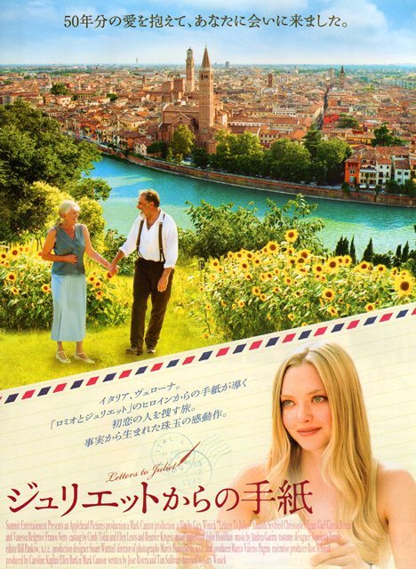 恋愛映画ではあるのだけれども、重くもなくでも決して軽い感じって訳でもなく、まぁ適度な温度でさりげなく描いてる風な映画であったね。ベタベタした感じでなかったのは評価してみたい。そういうのはいい加減飽きてる。。。 恋は、はたして永遠か?そんなありきたりの命題を突き詰めてもあまり意味が無いことは判っているけれども恋愛映画って奴はそれを生真面目に理想を描こうとする場合があるよね。そしてそれがきれい事と判っていても見ていると素直に信じたくなる。そんな類(たぐい)のムービーです。 世界中から届く恋愛相談の手紙は、遺跡に貼られていてそれを「ジュリエットの秘書」達が回収して一通一通に返事を返すシーンが映画の冒頭で説明的に出て来るのだけれども、ひょんな事から遺跡の奥に岩で隠れていた50年前の手紙を発見する。 見付けたのは観光でイタリアを訪れていたソフィ。その内容は、50年前にクレアと言う女性がイタリアで恋に落ちた男性との愛を貫けなかった苦悩を、ジュリエット宛につづった手紙だった。ソフィは自らその書き主クレアに手紙を書き、その手紙に触発されたクレアは50年前の恋を探しにイタリアへと訪れる。そしてソフィと共にイタリア中を初恋の相手を見付ける珍道中が始まるロードムービーなんだけれども、事実をベースにはしているらしいから永遠の恋も信じたくなってみたくなる。 当然ながらクレアもう老婦人。一方ソフィは今時の若い女の子。でも道中この二人の息は姉妹の様にピッタリ。案の定同行する孫のリチャードは二人に振り回されたりする展開ですが、クレアの50年越しの思いと共にやっぱり最後にはソフィとこのリチャードもくっつくと言うエンドはお約束です。でも、それは意外と不自然でもなく、ソフィに最初婚約者が居た設定が旨くエッセンスになってるですかねぇ。 ラストのロミジュリを意識した様なバルコニー越しのキス演出はちょっとダサくて戴けなかったけど、臭い恋愛映画では無かったよ。 僕がこの映画でどうしても最後に触れておきたいのは、ソフィ役の女優さん。アマンダ・セイフライド。好みにもよるけどけっこうカワイイっす♪今後ブレイク間違いなしだと思います。最初に日本でお目見えしたのはマンマミーア!って言う映画だからそんな昔じゃない。 そして彼女主演映画でクロエって言うのがいま同時期で公開されているんだけれども、こっちでは娼婦役で、ジュリエットの手紙で演じた清純派ソフィとは正反対の役回り。近くこちらもレビューして見たいとおもう。ついでに言うと彼女隠れ巨乳です!これ重要w そして、近々スリラー演出の赤ずきんも公開が控えており何か立て続けに彼女の出演映画が盛りだくさんだけれどもこれはすでに海外では売れているって証拠なんだりうね。日本でも間も無く人気がブレイクするのは間違いないでしょう! あらすじ: ロンドンに暮らすクレア(ヴァネッサ・レッドグレイヴ)のもとに手紙が届いた。それは50年前にクレアがジュリエットへ送った恋の悩みへの返事だった。その頃、クレアはイタリアで出会ったロレンツォと恋に落ちていたが、彼との愛を貫けず、その苦しい胸の内をジュリエットにだけ打ち明けていた...。ジュリエットからの手紙に背中を押されたクレアは、ロレンツォとの再会を決意し、イタリアへ向かう。返事を書いたソフィー(アマンダ・セイフライド)と共に、初恋の人を探す旅が始まった。クレアを最後に待っていたものは─?ジュリエットからの手紙に書かれていたこととは─? ほなな~♪ |
